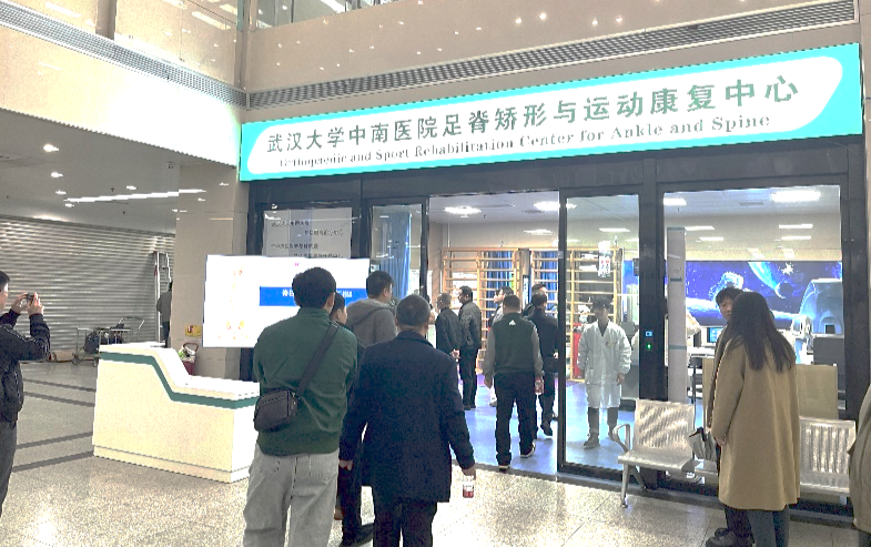 會(huì)議期間,足脊矯形與運(yùn)動(dòng)康復(fù)工作委員會(huì)秘書蘇杭帶領(lǐng)參會(huì)人員參觀武漢大學(xué)中南醫(yī)院足脊矯形與運(yùn)動(dòng)康復(fù)中心,為大家詳細(xì)介紹、展示目前中心配備的脊柱超聲、三維牽引等先進(jìn)設(shè)備。